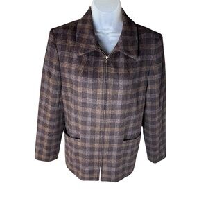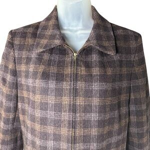 Andrea Viccaro Womens Wool Blend Plaid Zip Front Jacket Y2K Vintage Size 10