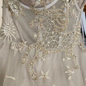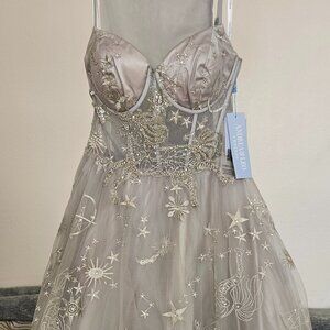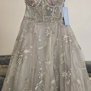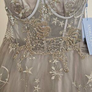 Andrea and Leo A0823 Couture Dress, Size 8, Silver Beaded and Emboardered, Stars