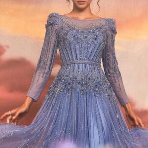 Andrea and Leo A1167 Illusion Long Sleeve A-Line Dress - Blue, Size 6