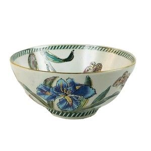 Andrea by Sadek Butterfly Iris Motif Hand Painted Textured Decorative Bowl