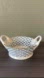 Andrea by Sadek Cream Blue Gold Porcelain Lattice Basket Bowl. Excellent condition. The only minimal sign of wear/age is on the bottom. Measures 7.5”x3.5” including handles. Bowl is 6.25” diameter. A gorgeous accent for any home.