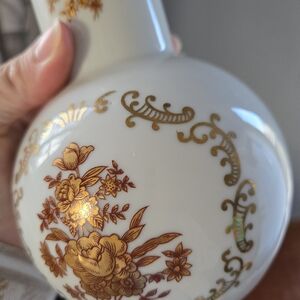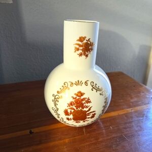 Andrea by Sadek Gold Red Floral Rose White Vase Vintage