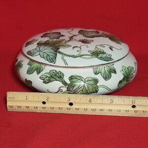 Andrea by Sadek Ivy Porcelain Trinket Dish with Lid Dresser Vanity Jewelry Holde