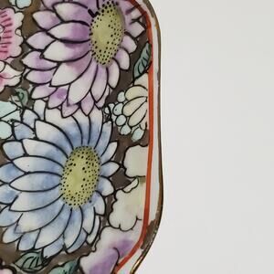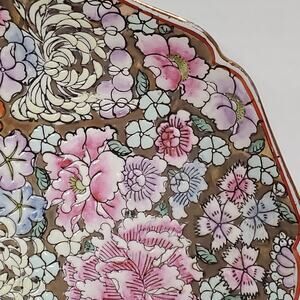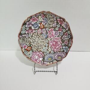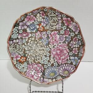 Andrea by Sadek Plate Painted Enamel Textured Mums Floral Decor Asian Inspired