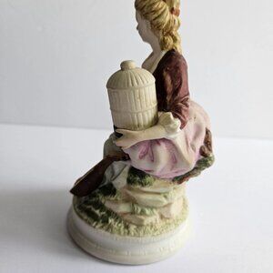Vintage porcelain figurine, Andrea by Sadek collectible, Victorian home decor, rococo revival, cottagecore figurine, romantic ceramic, shabby chic accents, birdcage figurine, French country style, lady sculpture, collectible