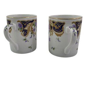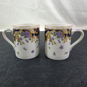 Andrea by Sadek Royal Violets Gold Rim 10 Oz Porcelain Mugs Cups – Set of 2