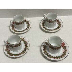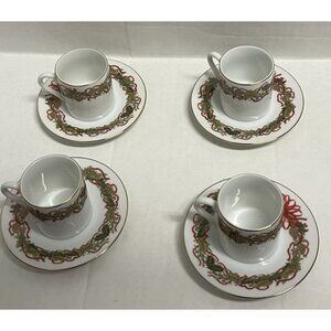 Andrea by Sadek Tea Cups & Plates Christmas Garland 1994 Set Of 4 (F)