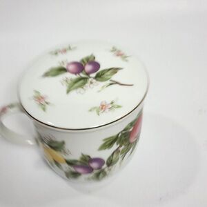 Andrea by Sadek Tea Cup Mug, Strainer Infuser w Lid Fruits Pattern Japan.