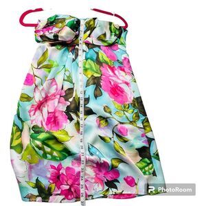 Andrea Behar Floral Halter Mini Dress — Beaded Neckline, Multicolor, Size 4