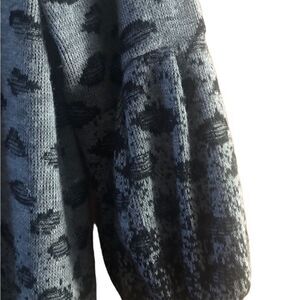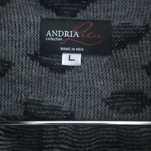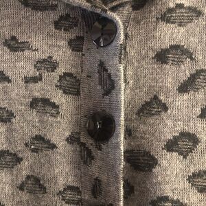 Andrea Lieu Collection leopard print knit sweater jacket. Size large. Ruffle collar. Big button closure. Sleeves puff halfway down. Made in USA. Preowned EUC
