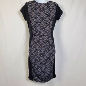 Andrea Missy Black Lace Panel Sheath Dress Size M Cap Sleeve Fitted Work Cocktai