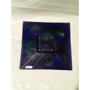 Andreas Meyer Hand Made in Israel Fused Art Nahariya Class Square Plate. Blue Glass. Approximately 11x11 inches. No chips or cracks.