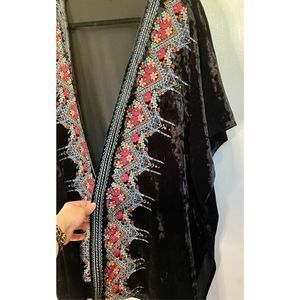 Andrée by Unit Boho Velvet Embroidered Kimono Cardigan in Black - Size m/l