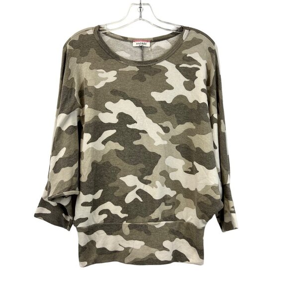 Andree 3/4 Dolman Sleeve Camouflage Top Cinched Waist Womens Size Small
