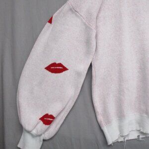 Andree By Unit Balloon Sweater Raw Hem Kiss Lips White & Red Women Size | 2X
