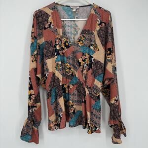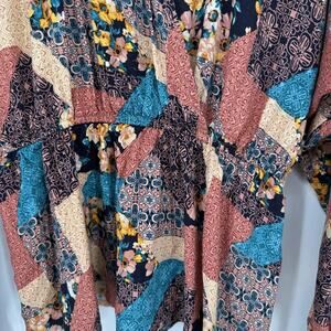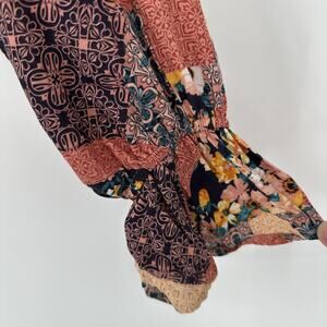 Andree By Unit Blouse Womens Medium Multicolor Patchwork Boho Peasant Top Floral
