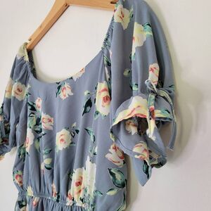 Andree By Unit Blue Floral Mini Dress Romantic Small Puff Sleeve