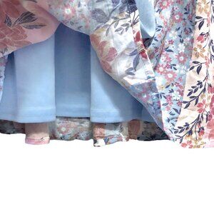 Andree By Unit Blue Pink Floral V-neck Dolman Sleeve Elastic Waist Dress M
