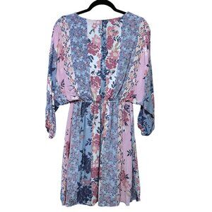 Andree By Unit Blue Pink Floral V-neck Dolman Sleeve Elastic Waist Dress. Size Medium.