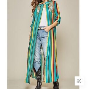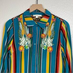 Andree By Unit Multi Color Striped Embroidered Cactus Southwestern Duster Shirt Dress Small