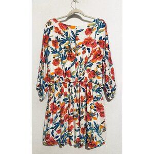 Andree By Unit Dress Womens 3X Floral Dolman Sleeve V Neck Boho Cottagecore