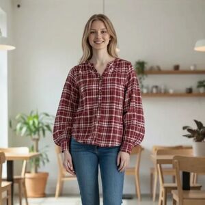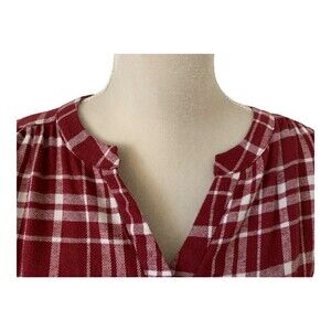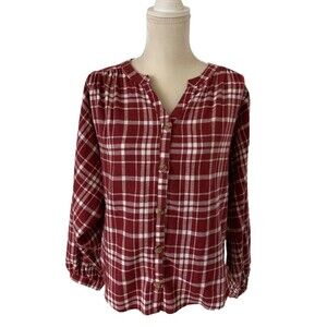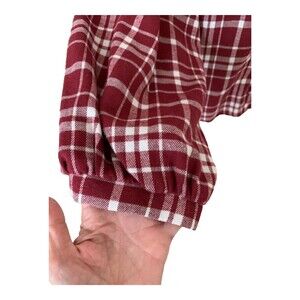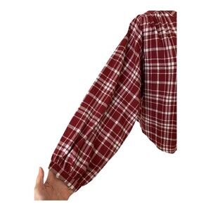 Andree By Unit Flannel Shirt Women's Small Burgundy White Plaid Wide Sleeve
