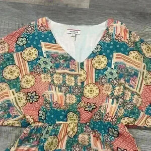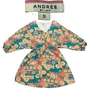 Andree By Unit Patchwork Geometric Print elastic waist Batwing Sleeve Boho Dress Womens Sz Small Festival Bohemian Cottagecore