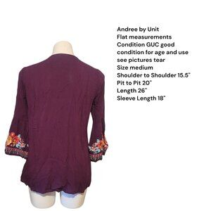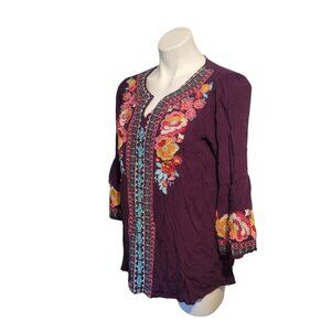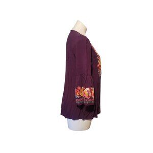 Andree By Unit Peasant Tunic Top Medium Embroidered Floral Purple Boho