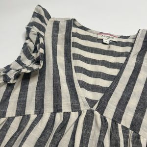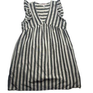 Andree By Unit S Women’s Empire Knee Striped Dress 100%Cotton Minimalist GrayWht