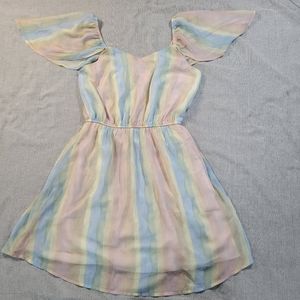 Andree By Unit Small Womens Dress Pastel Rainbow Flutter Sleeve Flowy