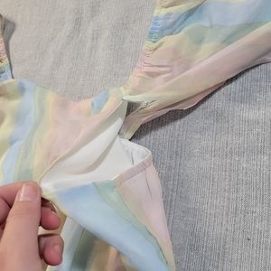 EUC wedding, graduation, dance, festival, concert, Taylor swift, fun, pride circus, baby shower, Easter, feminine romantic. Pastel colors, elastic waist, entire dress is lined. 100% Polyester RN105013 Style 94361.