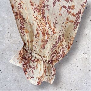 Andree By Unit Tiered Floral Top Cream Brown Semi Sheer Large Boho Peasant