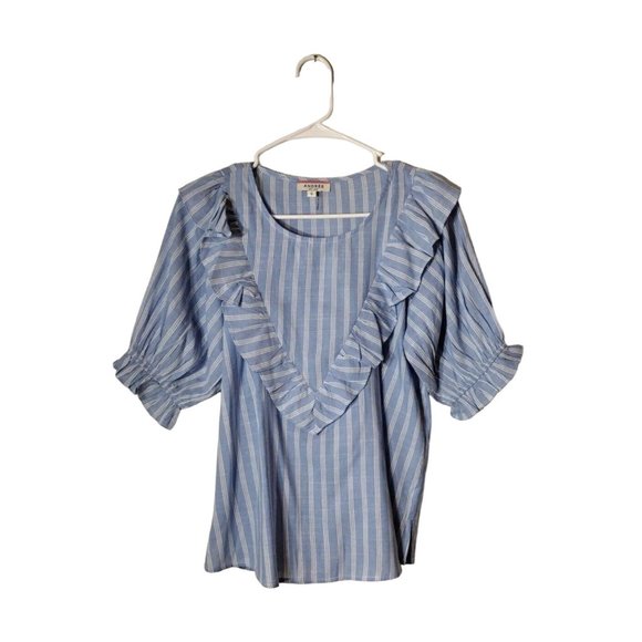 Andree By Unit Top Womens Small Balloon Sleeve Striped Peasant Coastal