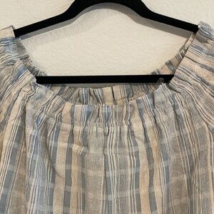 Andree By Unit Women’s Cropped Off Shoulder Top Large Blue Cream Chambray Cotton