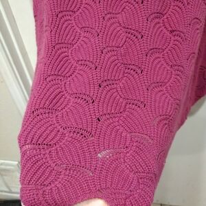 Elevate your wardrobe with this stunning fuchsia batwing sleeve off shoulder pullover sweater top from Andree By Unit. The open-knit cotton and acrylic material makes it a perfect fit for winter, fall, and spring. The short dolman sleeves and off-shoulder neckline give it a bohemian and slouchy vibe, perfect for a casual day out or a night on the town.