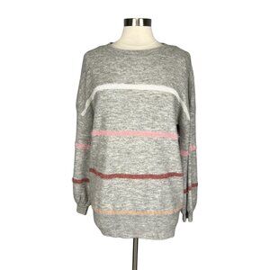 Andree By Unit Womens Gray Striped Knit Crew Neck Sweater Glittery size Large