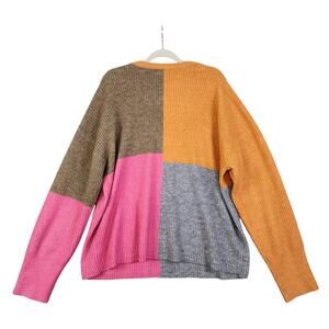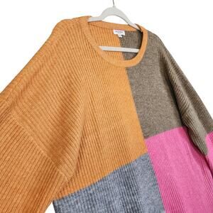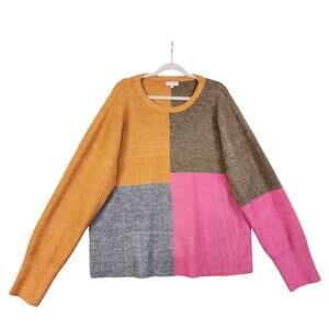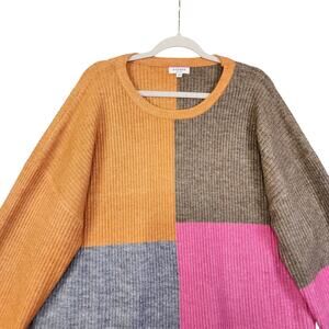 Andree By Unit Womens Knit Multi Color Block Sweater Plus Size 3X Cozy Oversized