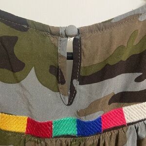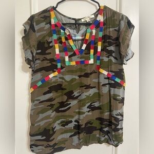 Andree By Unit Women's Large Camo & Colorful Embroidery Flutter Sleeve Blouse