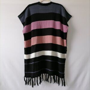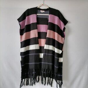 Andree By Unit Women's Multicolor Striped Fringe Open Cape Poncho One Size