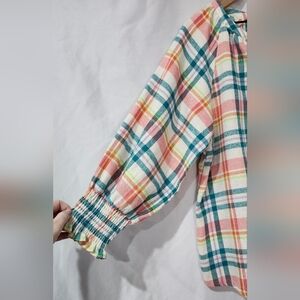 Andree By Unit Women's Peasant Top Size Medium Bright Plaid Flannel Preppy Boho
