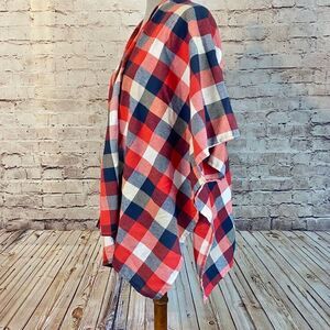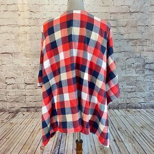 Andree By Unit Womens Poncho Cardigan Blanket Wrap Flannel Plaid Red One Size