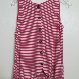 Andree By Unit Womens Sz Medium Red White Stripe Button Back Top Small hole in the front. See photos