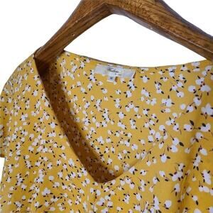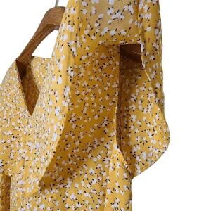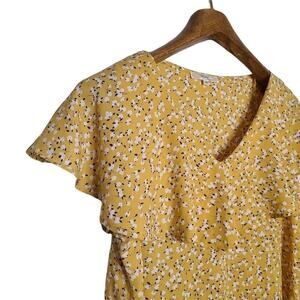 Andree By Unit Yellow Floral Print Flutter Sleeve Top Size Medium
