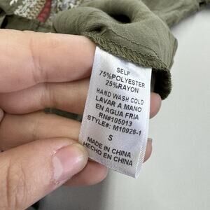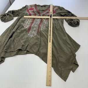 Andree Shirt Womens Small Green Embroidered Boho Floral Tunic Asymmetrical Top