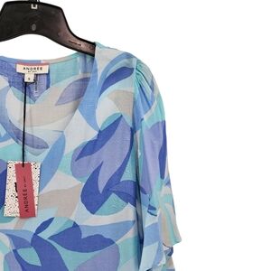 Women's Rayon Lightweight Printed Blouse from Andree in Blue Multi.