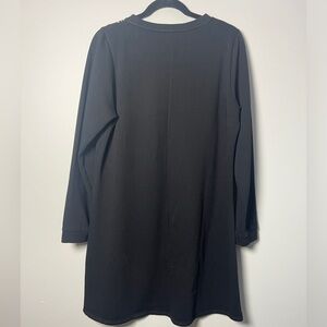 Black Fleece Dress with White Embroidery and Tassels. Crew neck. Soft fleece inside. Long sleeves. Aztec/tribal/boho design. "Molly Bohemian Dress". Very versatile and can be worn for many different occasions!