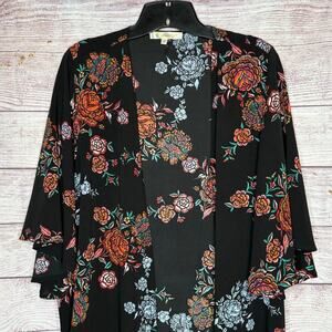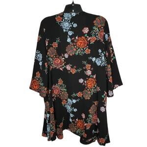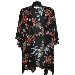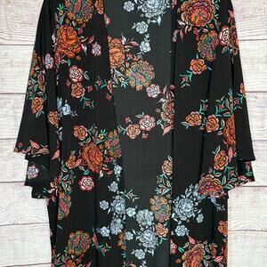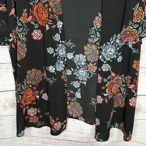 Andree by Unit Black Multicolored Floral Open Front Kimono Size