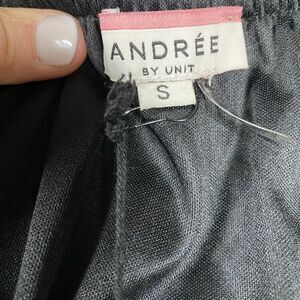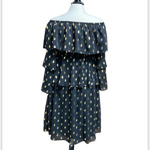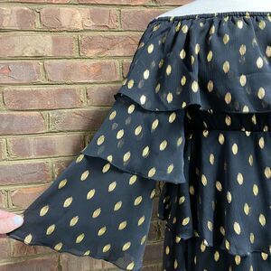 Andree by Unit Black Sheer Gold Shimmer Dots Ruffle 3/4 Sleeve Dress NWT