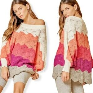 Andree by Unit Coral Colorblock Dolman Sleeve Oversized Sweater Size 1X
