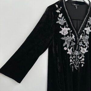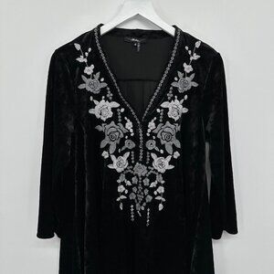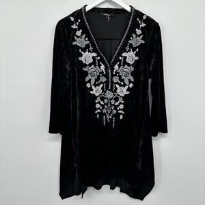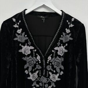Andree by Unit Crushed Velvet Tunic Top Shirt Blouse Small Embroidered Flowy